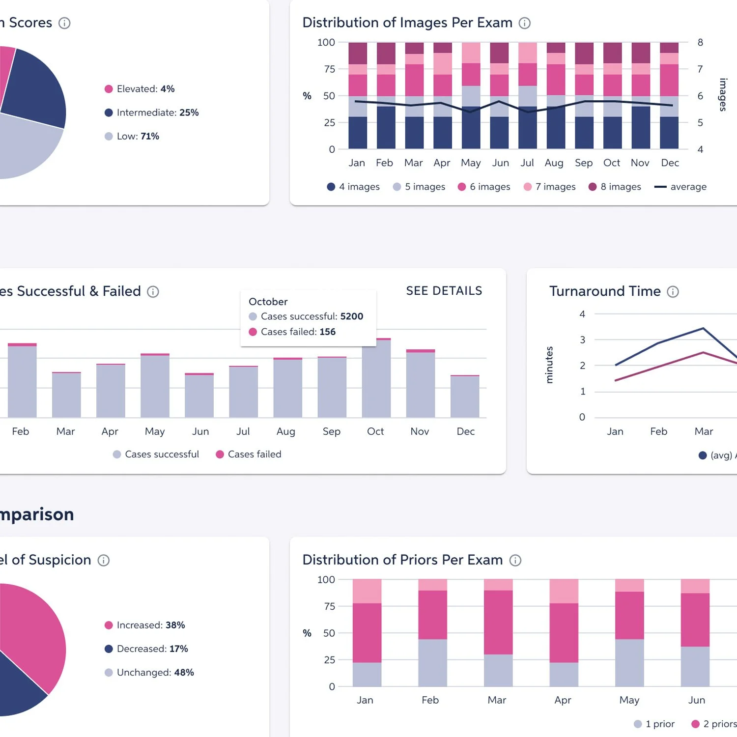 ScreenPoint Medical is a leader in using AI to evaluate mammograms and improve detection of breast cancer. Their Transpara software is used by radiologists around the world. Each year, radiologists gather at the RSNA meeting, the major conference in the field, and ScreenPoint wanted to take the opportunity to gather user feedback on new designs. Functionaire worked rapidly with their team to refresh the Transpara report and to create an exploratory dashboard geared toward department leads. The report was redesigned to improve scannability and better align to radiologists’ tasks and the dashboard was focused on critical metrics.